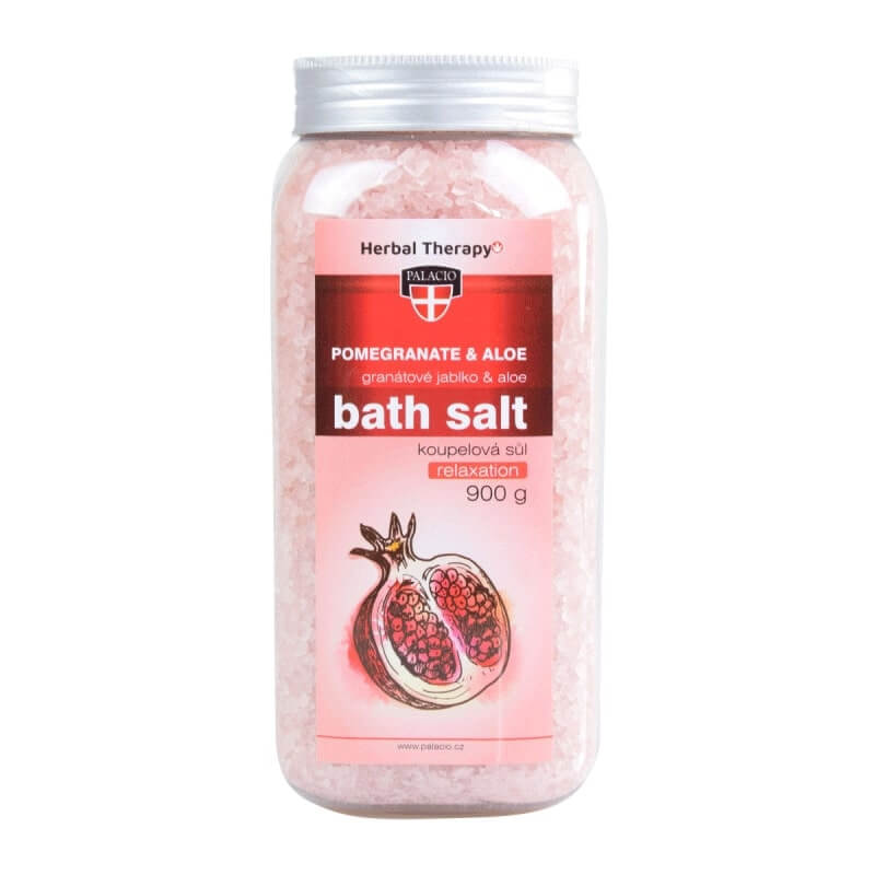 Koupelová sůl s extraktem z aloe vera a podmanivou vůní granátového jablka.