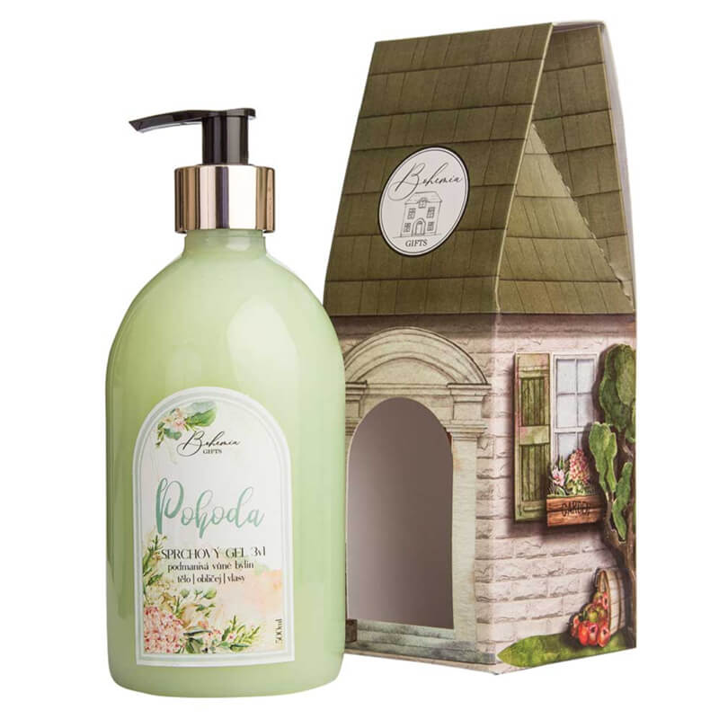 Bohemia Gifts Domeček Pohoda - konopný sprchový gel 3v1 500 ml je jemný sprchový gel s konopným olejem v dárkové krabičce na tělo, vlasy i ruce. Je to dokonalá kombinace osvěžení a péče o pleť s touhou po krásných dárcích. Každá krabička obsahuje jemný sprchový gel, který je vyroben z nejkvalitnějších surovin a přináší vám intenzivní osvěžení a očistu. Jeho příjemná kořeněná vůně a bohatá pěna zanechají na vaší pokožce příjemný pocit svěžesti a jemnosti.